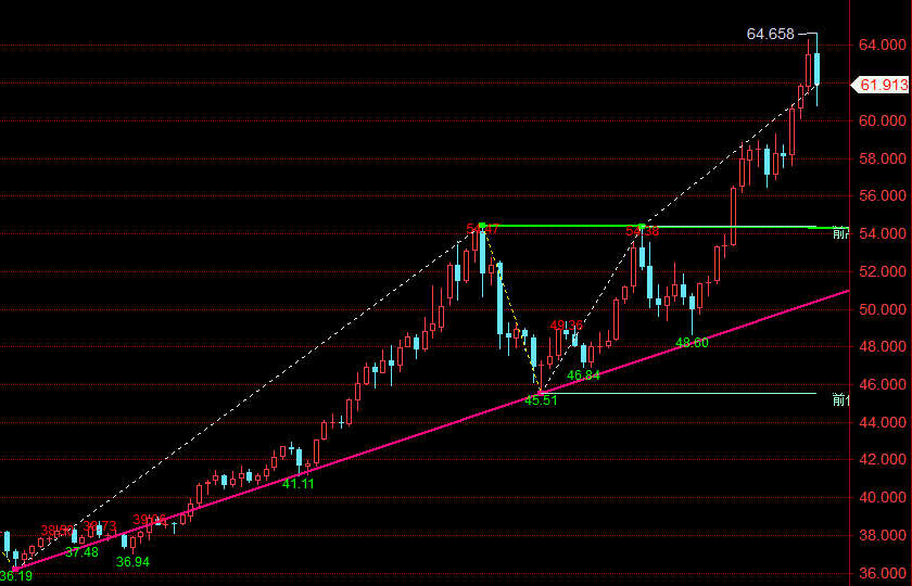当前银价短期回调风险已显现,下行需重点关注第二个复制型上升通道上轨支撑,即57美元一线,此位置是趋势关键分水岭,若银价跌破该关口且未能快速收复,将触发阶段性回调走势,前期阻力位将转化为核心支撑位。回调过程中,首要目标看向55美元,进一步下探可关注50美元整数关口,极端行情下或测试45美元支撑,待该区域企稳后,本轮牛市趋势有望再度重启。